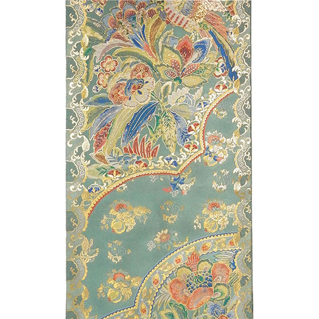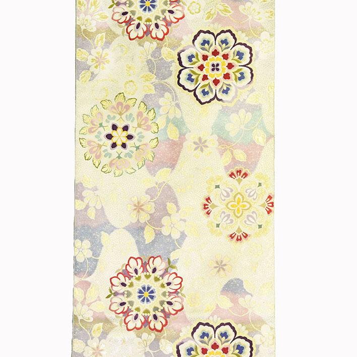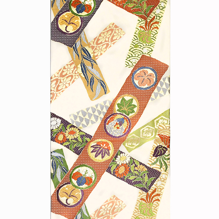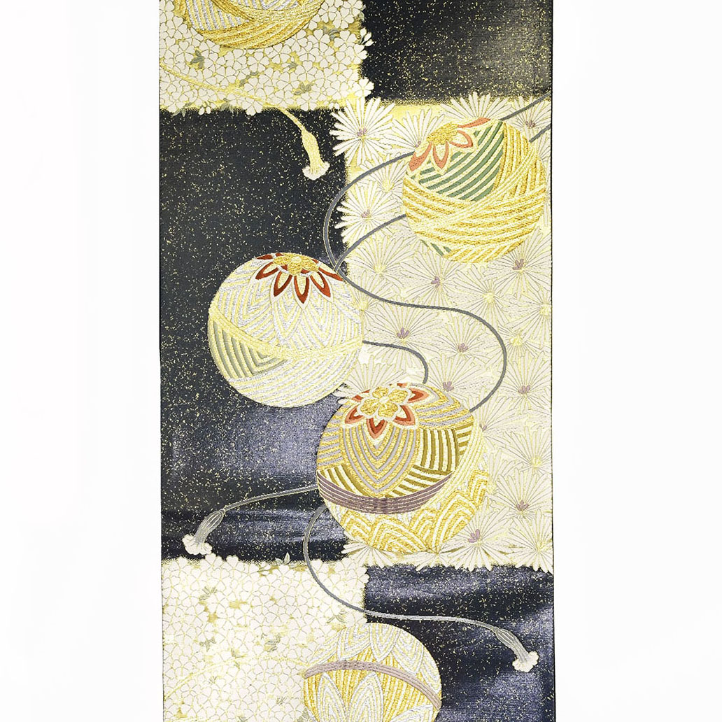 濃紺地 流水翔鶴松菊文てまり柄袋帯
