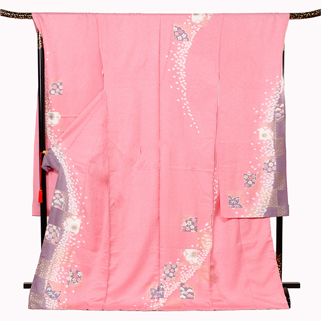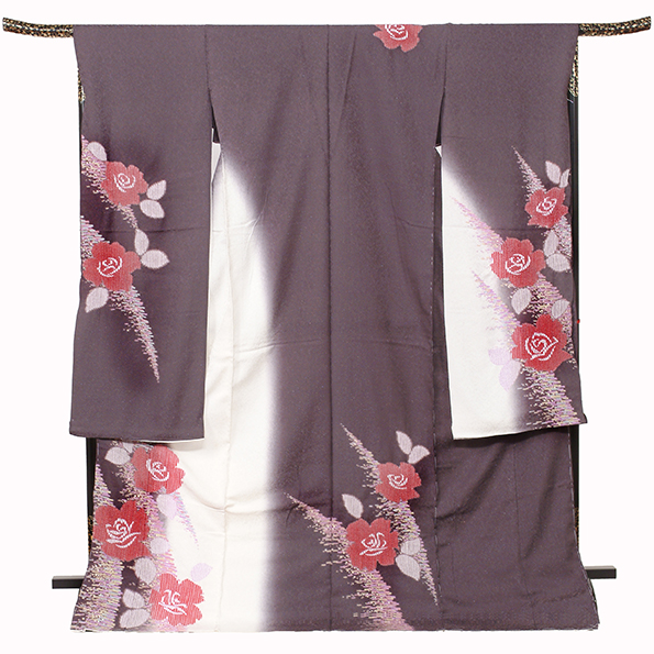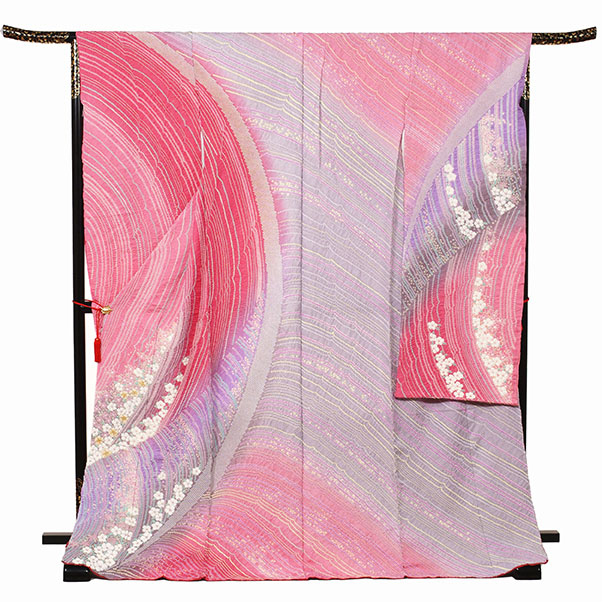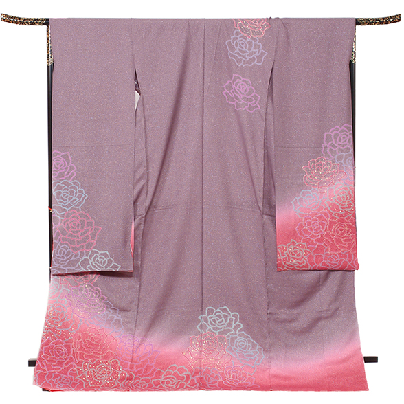 藤ローズ色地 ばら柄おぼろ染め振袖